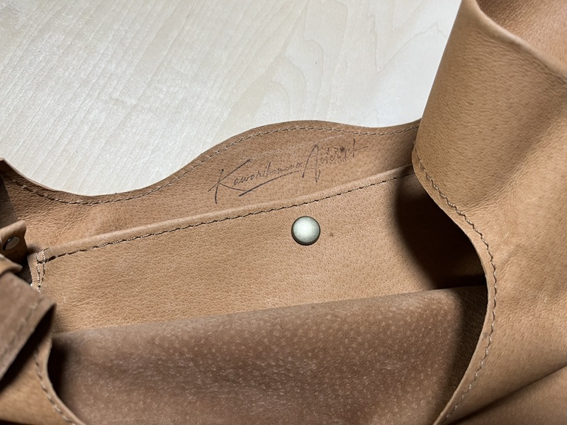 ・こちらの革色はレジ袋のような革袋のキャメルと同じ色です