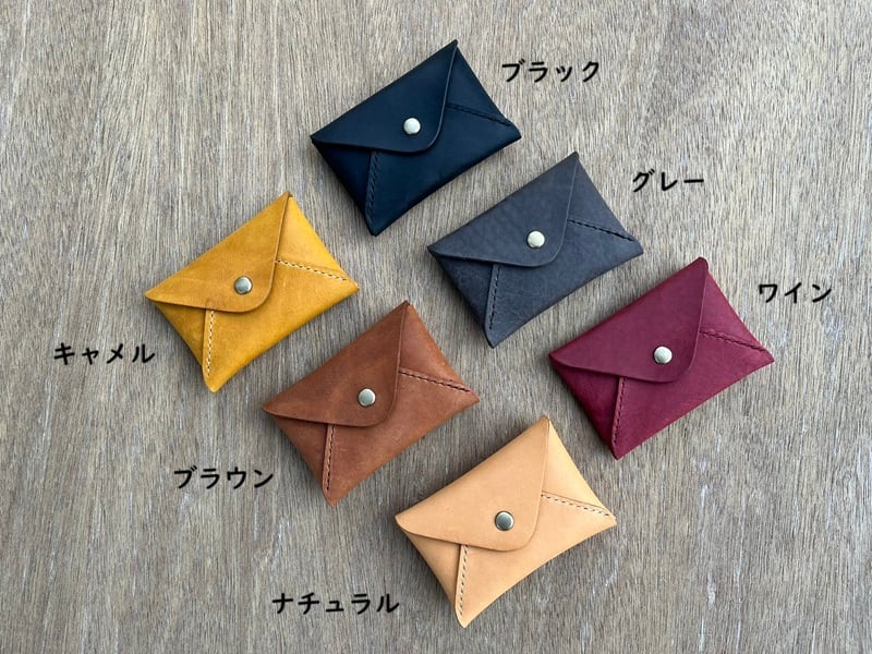 使い方はあなた次第。6色から選べる封筒型カードケース。たくさん入りません。仕切りもありません。それで充分な方に。封筒型のカードケースです。1室構造の封筒型マルチなケース。名刺入れやカードケース、ミニウォレットとして使用可能。
