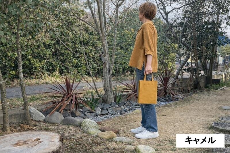 サイズ:A5タテ/w180×h250×d80 持ち手の幅 約15mm・長さ280mm(ギリギリ腕通しできる長さ)