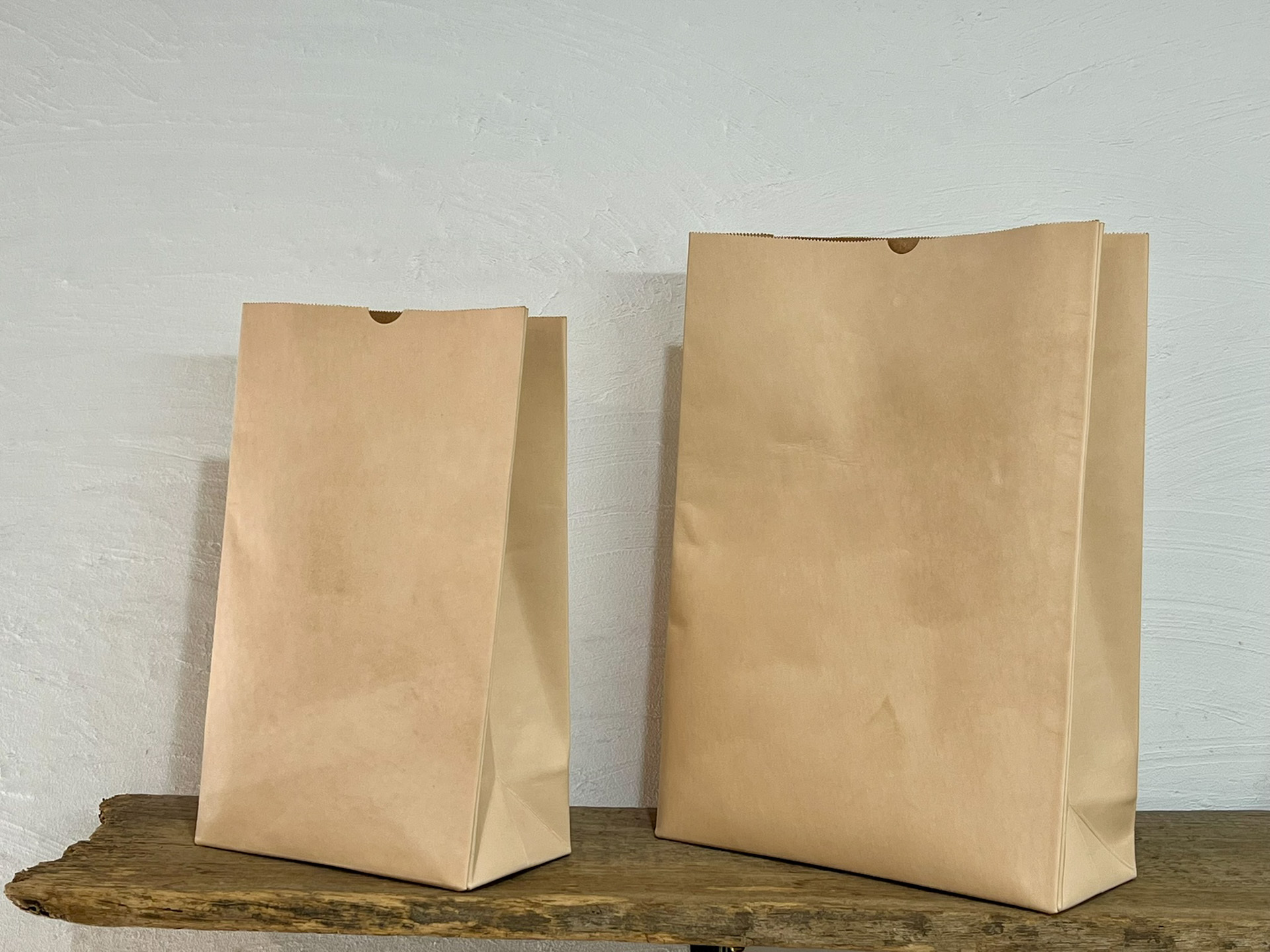 シンプルな紙袋に近いデザインで開口部分をくるりと巻いて手掴みしたり