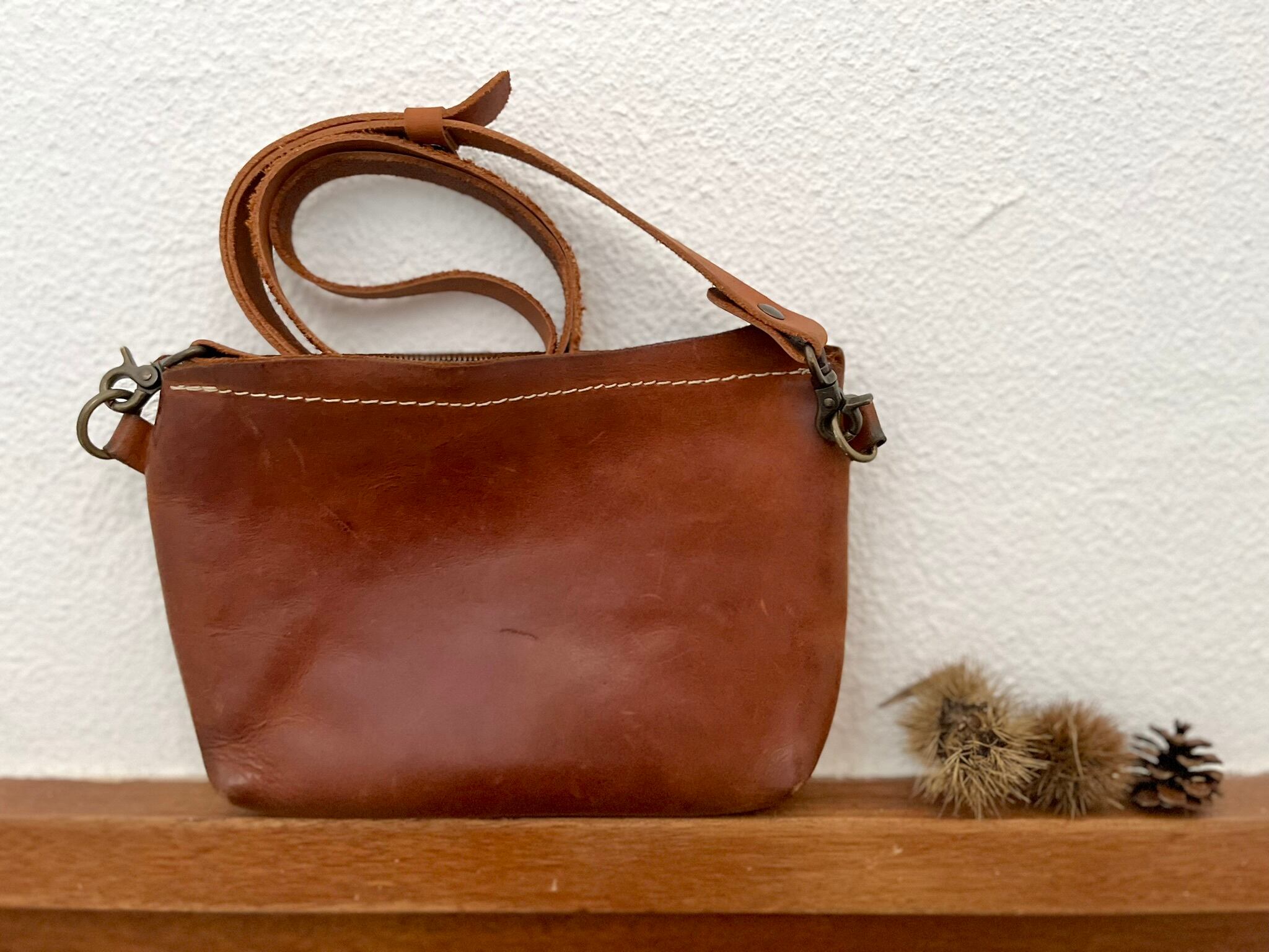 スマホと鍵、スマホとミニ財布など何かと便利です。長さ調整できるショルダーは取り外しも出来るのでポーチとしても使用できます。開口部は端革のデザインを採用で少し個性的な仕上がりです。(時にフラットなものもあります)