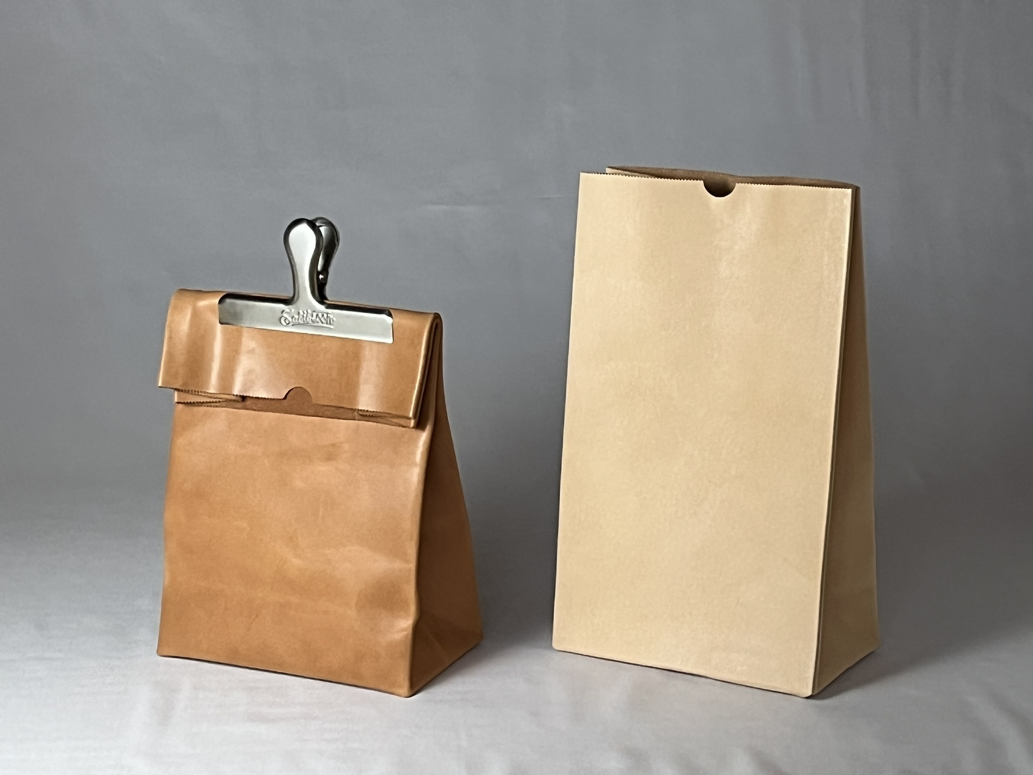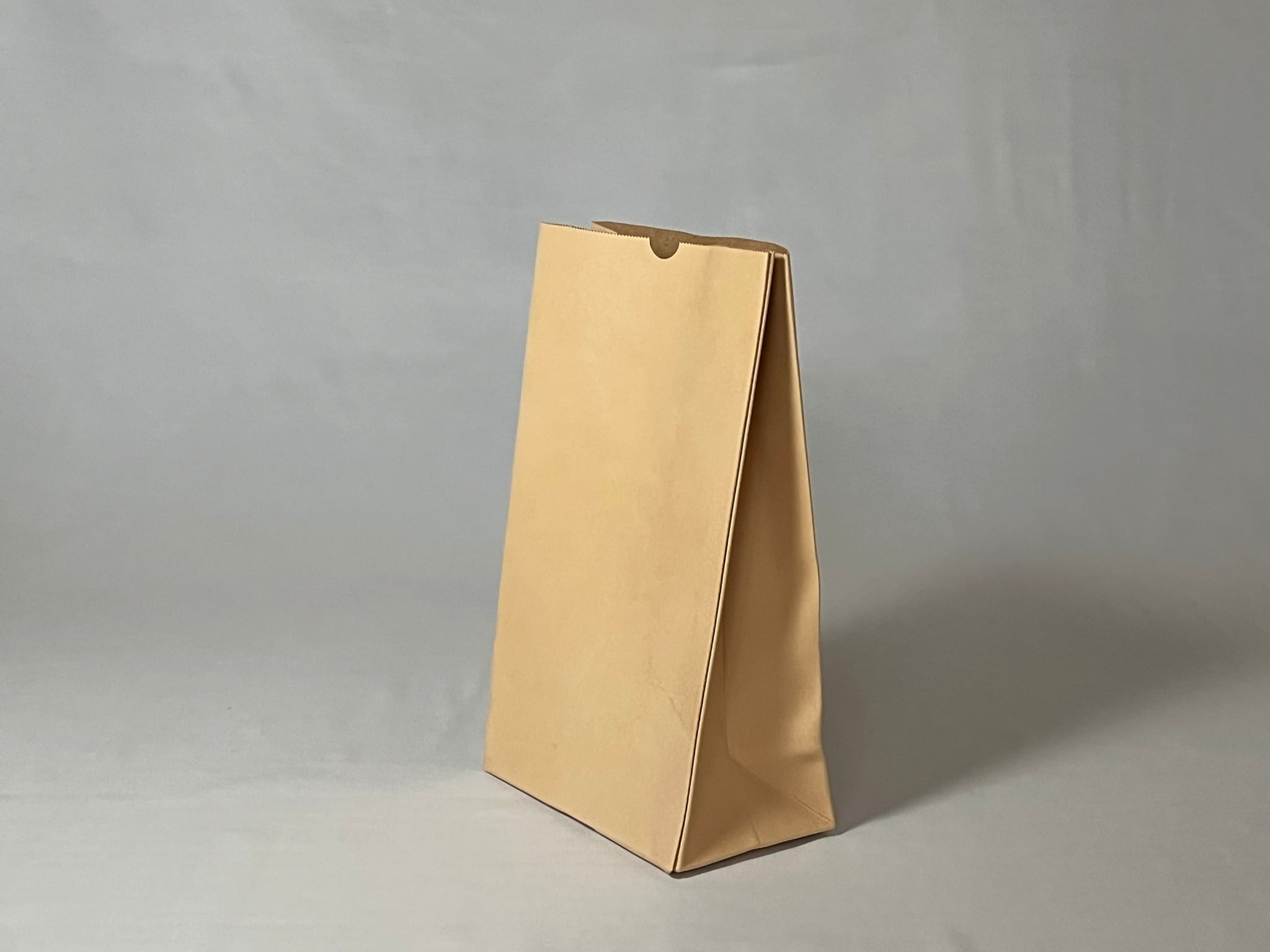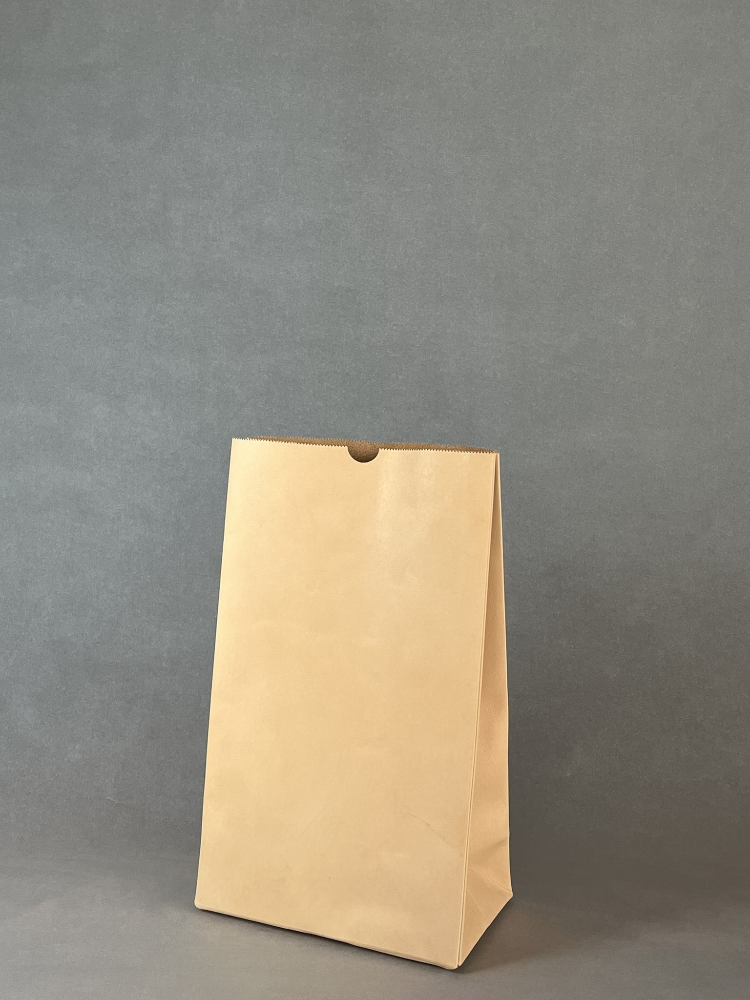 育てる紙袋として自信を持っておすすめする牛ヌメ革のただの袋のニューサイズ。経年変化を愉しめる牛ヌメ革をオイルアップして仕上げております。