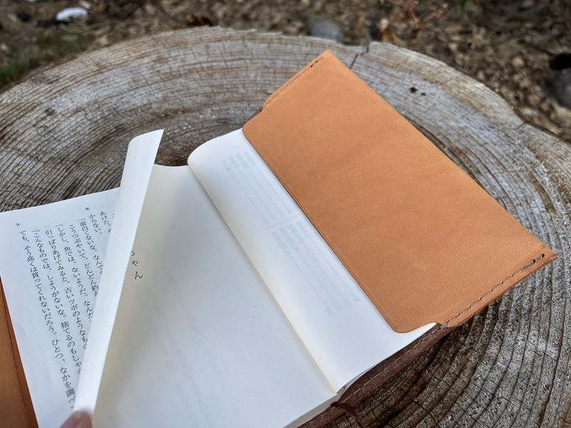 文庫本サイズのブックカバーの片側は巻き込むタイプで厚みのある文庫本もサイズに合わせて調整可