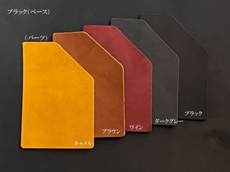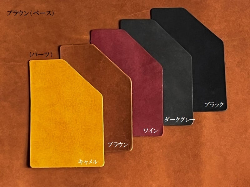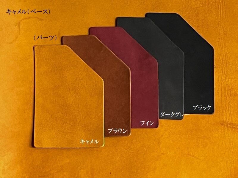 革色は黄色味の強いキャメル、ヴィンテージ感のあるブラウン、落ち着いた印象のワイン、ダークグレー、ブラックの5色からお選びください。