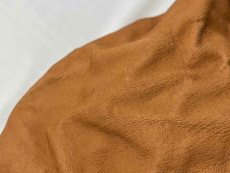 これほど大きいバッグだと個体の傷は避けられないものです。生きていた時の証としての傷ということで個性と捉えていただけると嬉しいです。本体の完成後に一度洗いにかけてシワを施してみました。ウォッシュド加工により元々の傷が少々目立ちにくくなっています。